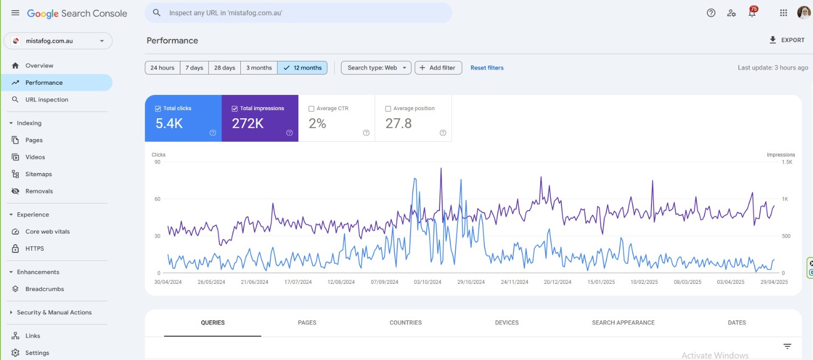 Mistafog is our Austrial clients business, they sell high-quality fogging and misting systems in the local area. When we found him, the client was too much fed up with his traffic and sales. Then we take the responsibility and complete this project successfully. At the beginning, the site had low traffic, weak keyword rankings, and no strong SEO setup.